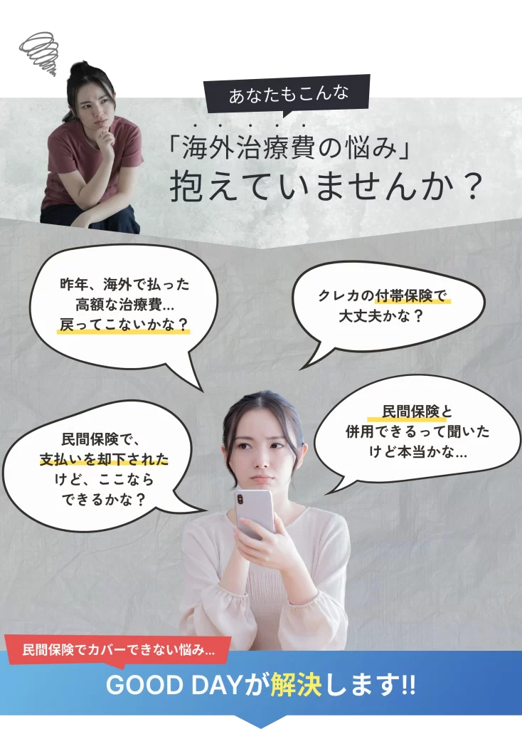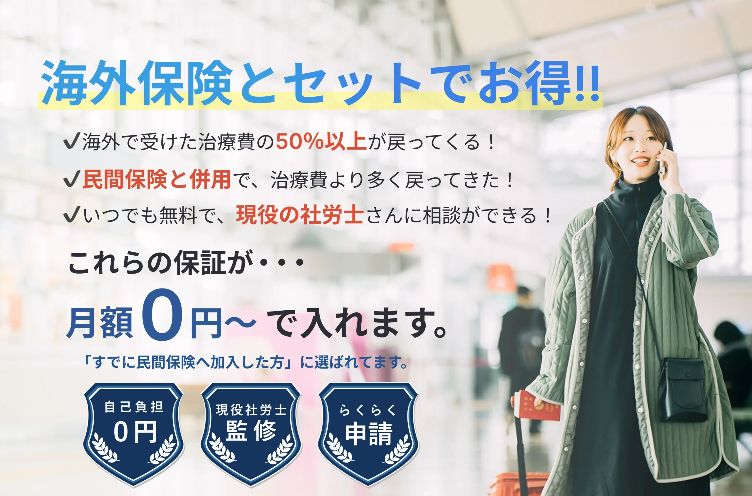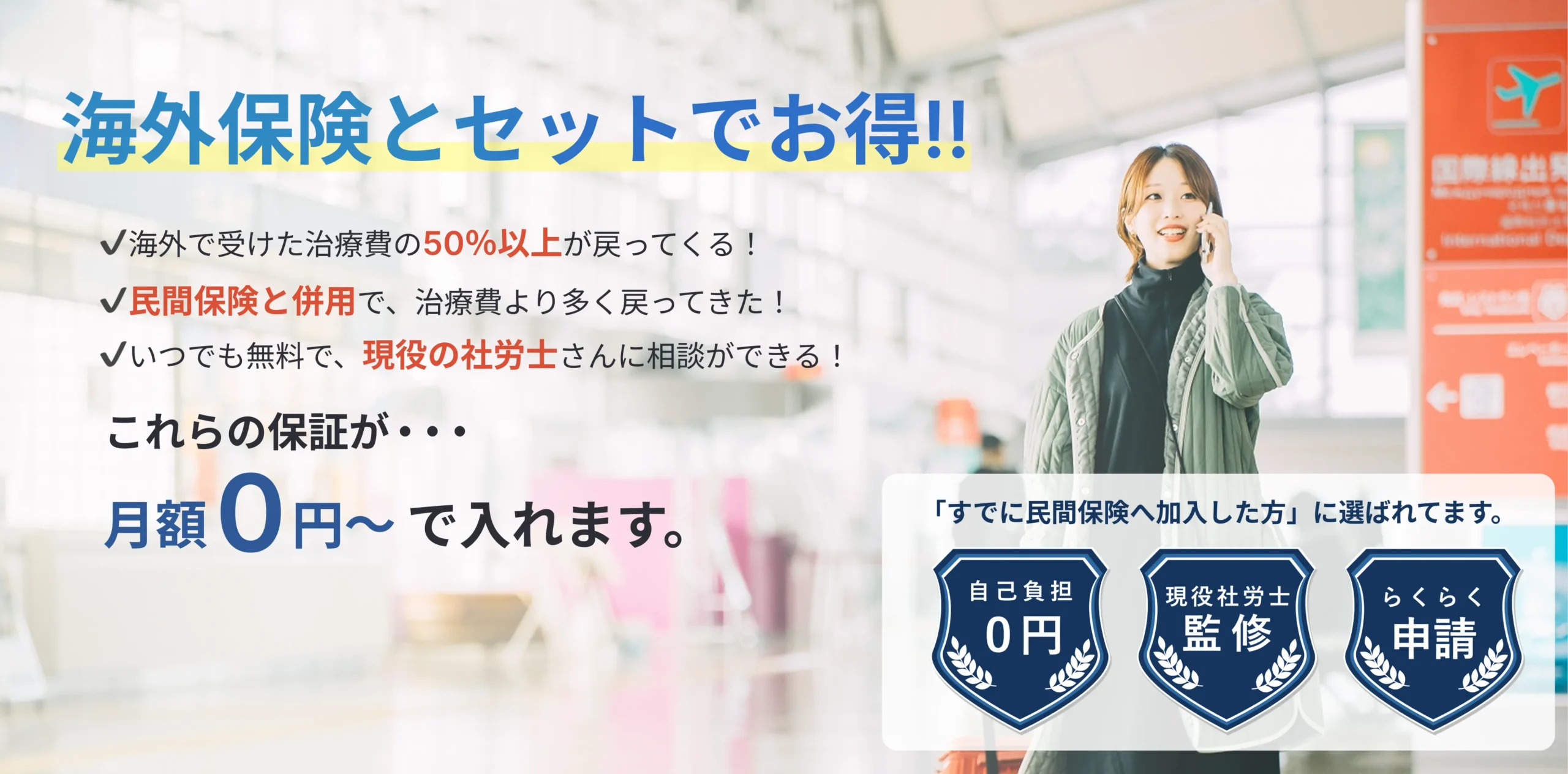 はい、可能です。海外旅行保険と併用することで、自己負担額をさらに軽減できる可能性があります。保険適用分を除いた自己負担額に対して還付を受けられるため、より経済的に安心して治療を受けることができます。