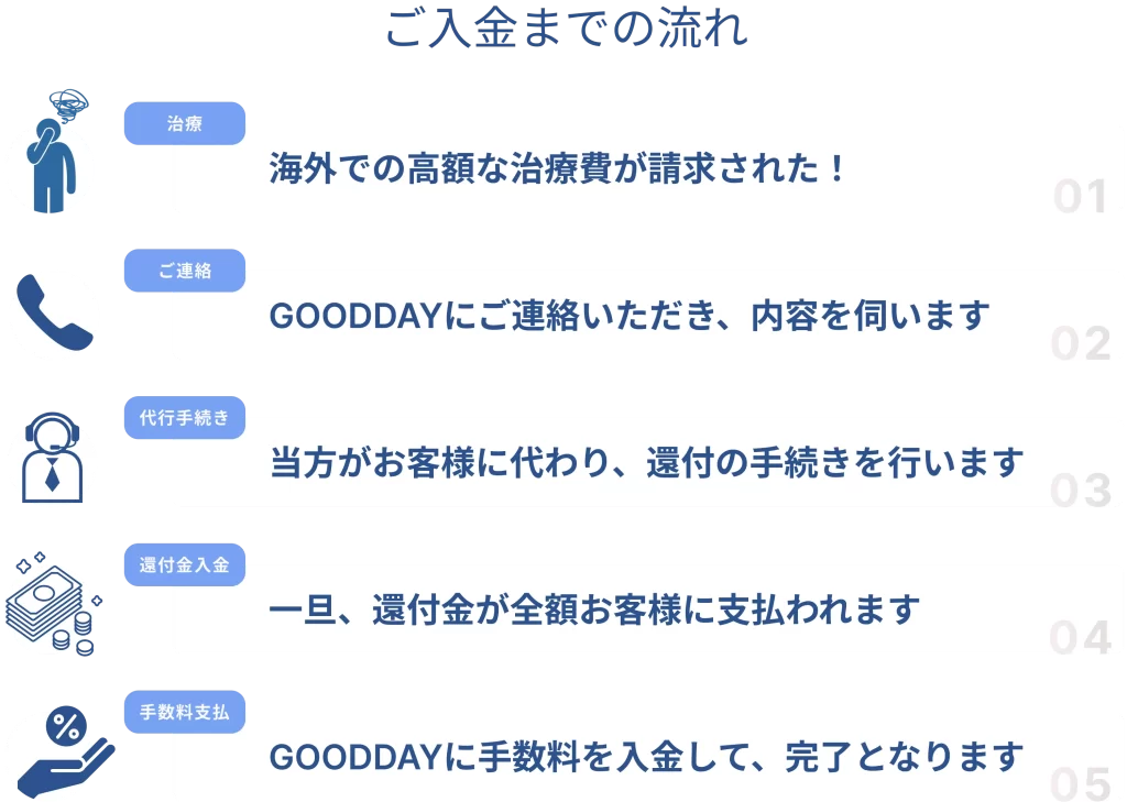 基本的に、公的な健康保険制度の適用範囲内の治療費が還付対象となります。ただし、国や治療の種類によって異なるため、具体的な対象範囲については無料相談にてご確認ください。